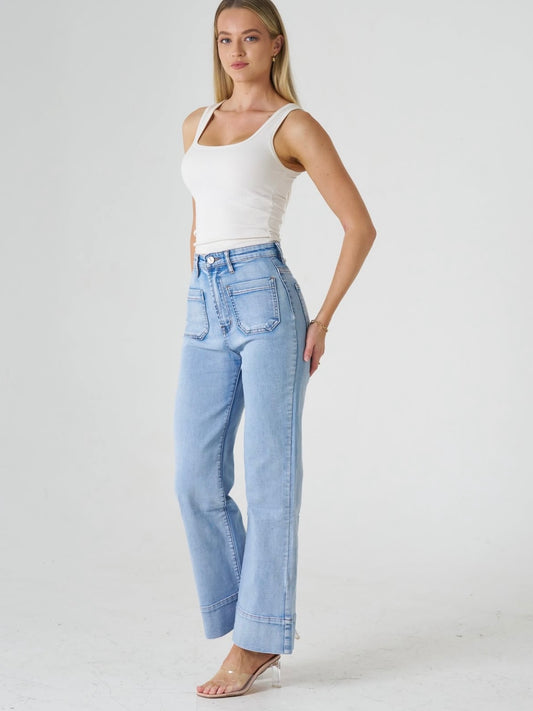 Wakee : Marlo Wide Leg Jeans : Light Wash