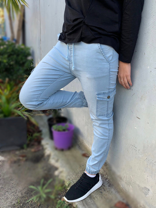 Wakee Denim : Jersey Joggers : Light Blue Chambray