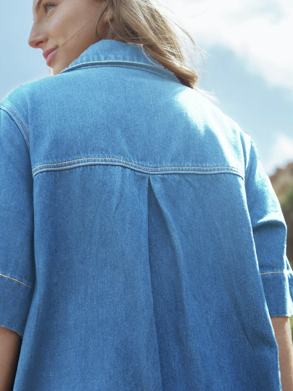 Meet our Poppy Denim Dress. An effortless Boxy style dress with Side Pockets! Crafted from mid-weight denim with a soft finish, this dress features 100% cotton denim, a relaxed fit, that can be thrown on with ease. Complete with a front chest pockets, functional front buttons and back pleat. It’s the perfect blend of comfort, practicality, and style.