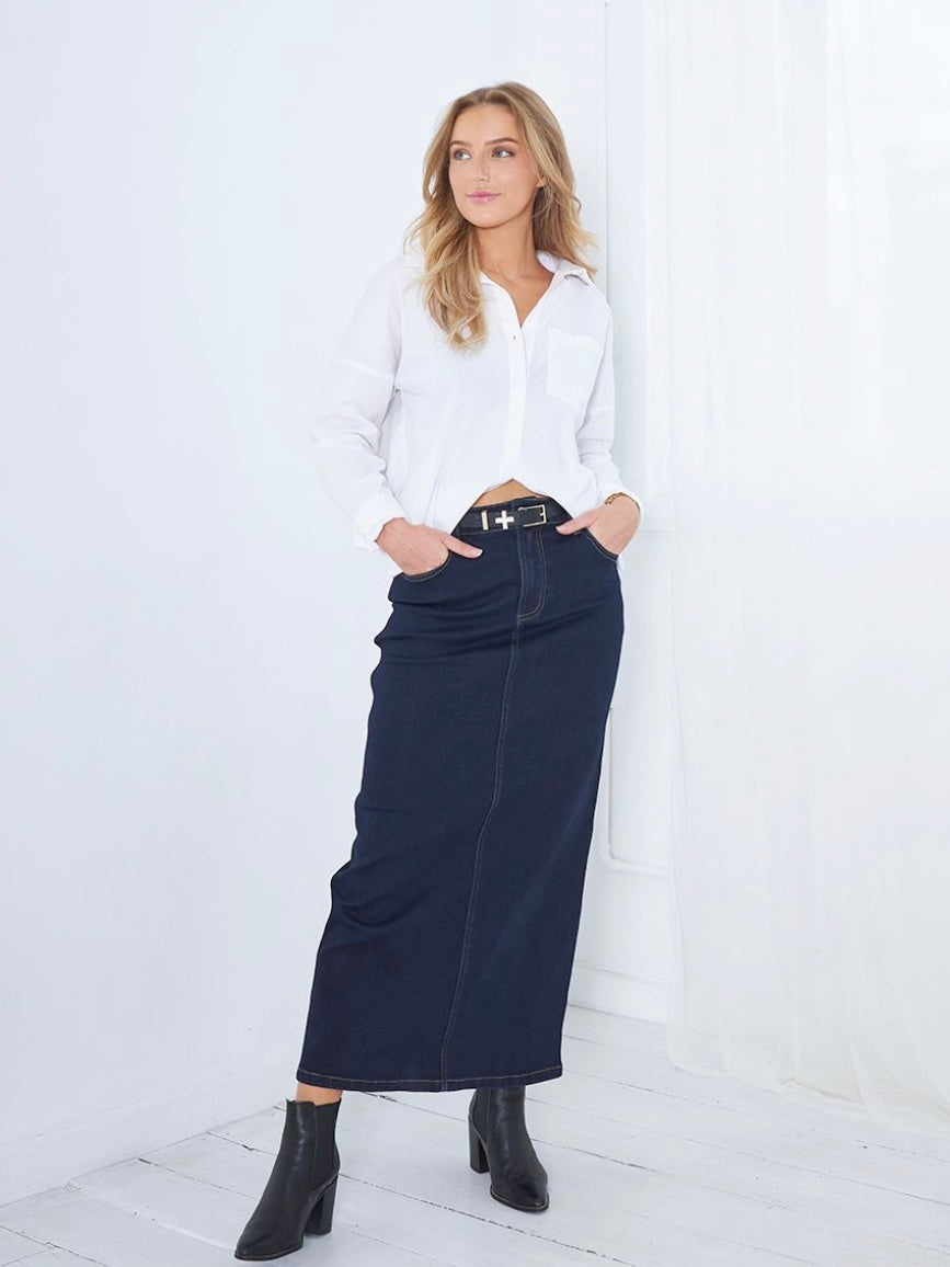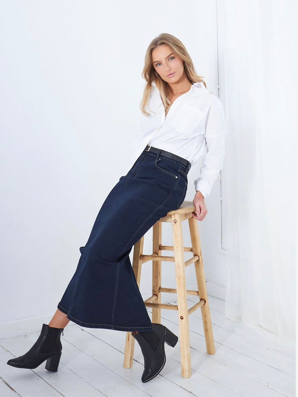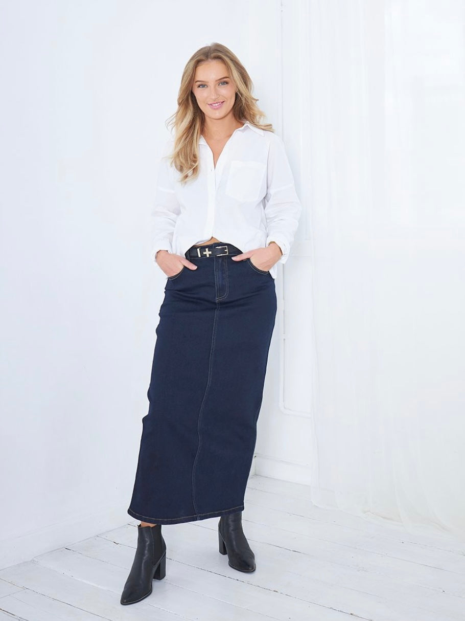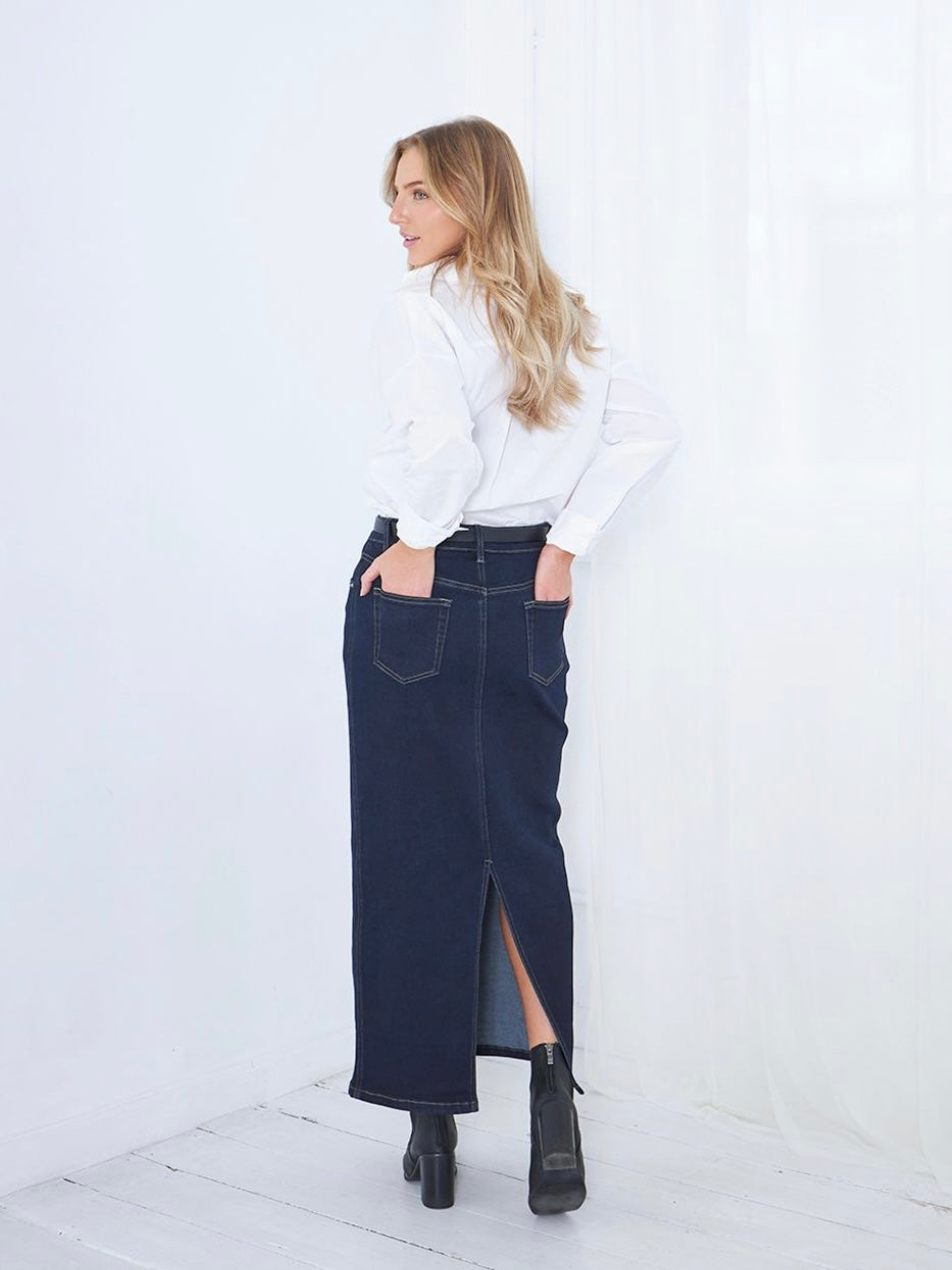 The new Demi Denim Maxi Skirt is our new must-have maxi skirt.