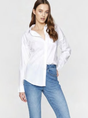 The Laguna shirt has a relaxed oversized fit. Button up shirt with a long sleeve that sits off the shoulder. A versatile piece for every wardrobe. Relaxed oversized fit, with a slightly longer curved back hem.