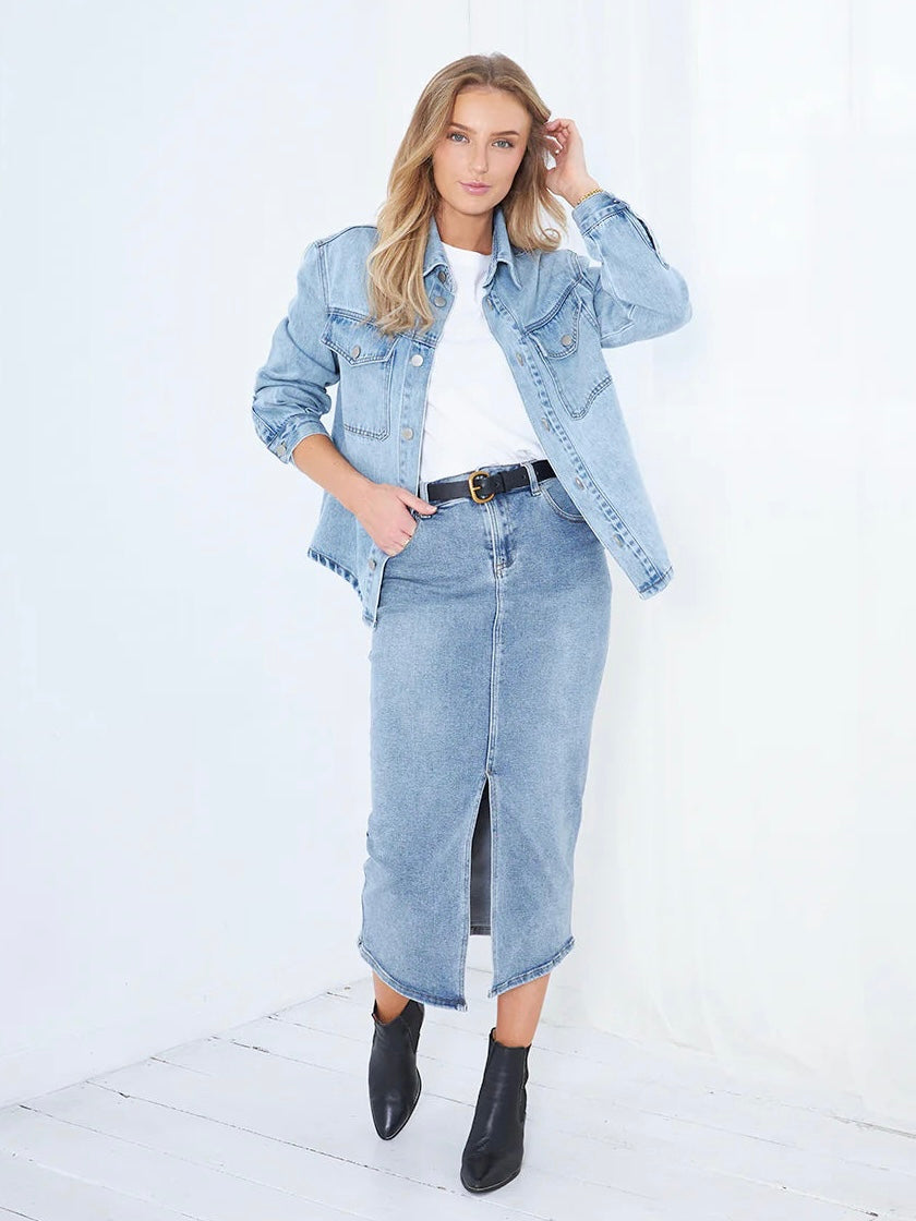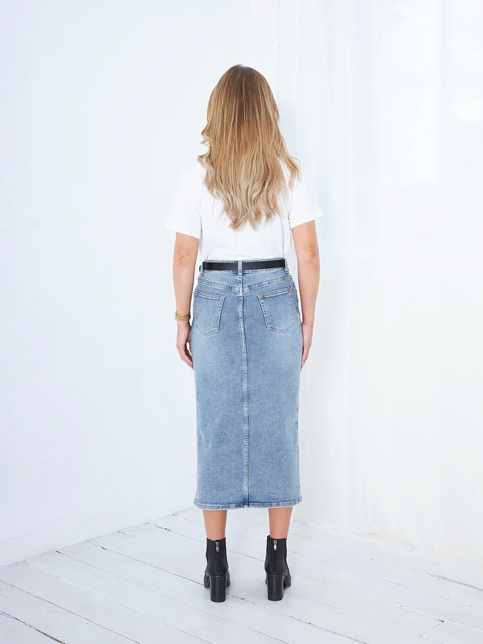 Embrace the day in style this season in the beautiful new Willow Denim Midi Skirt!